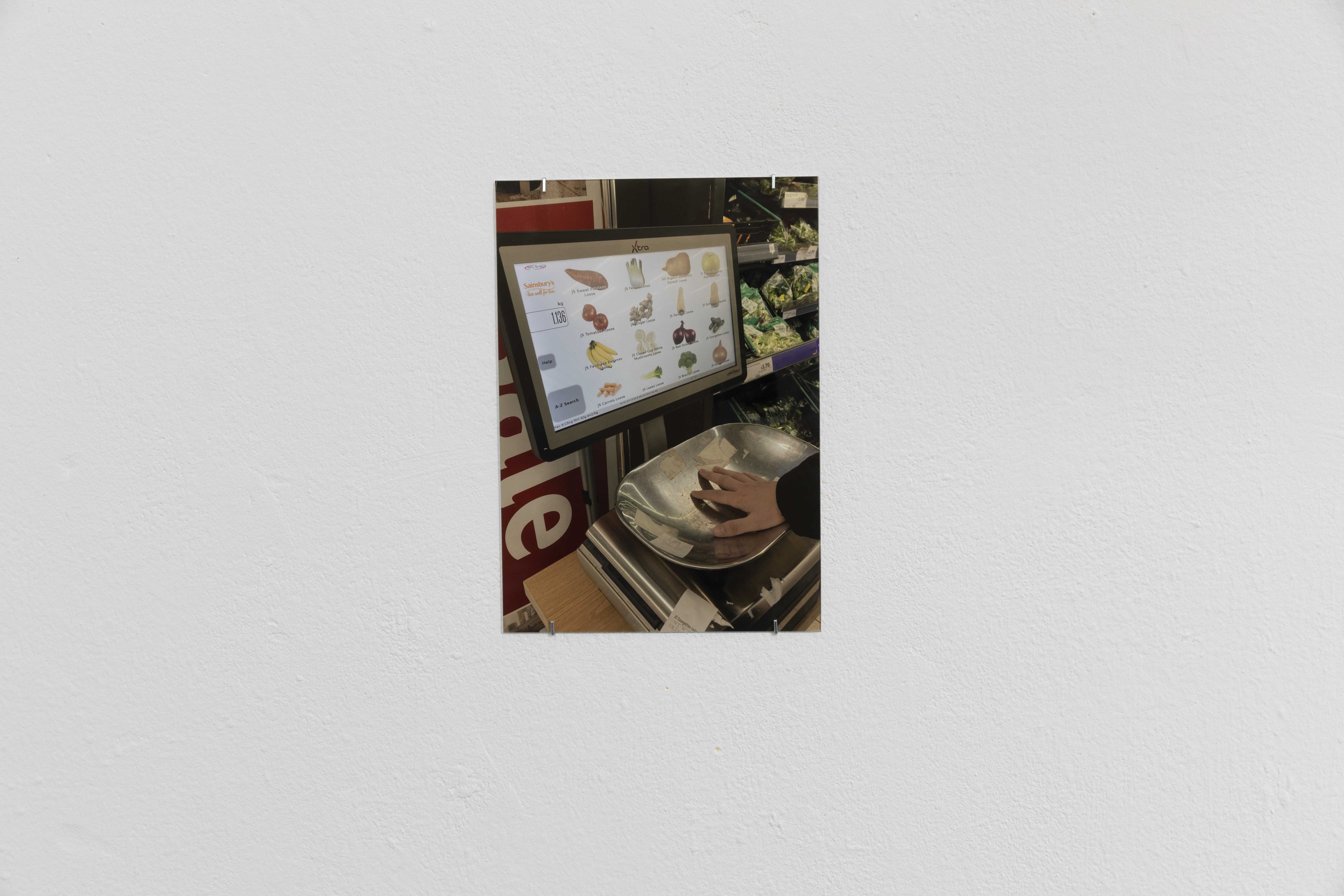 C-print, glass, nails, I pressed my hand on a supermarket scale, and the weight displayed was that of a newborn tiger.